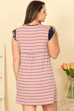 Make a bold statement with our Short Sleeve Contrast Floral Stripes Dress. Featuring a unique combination of floral and stripes, this dress is both eye-catching and stylish. The short sleeves provide comfort, while the contrast design adds a touch of flair. Elevate your wardrobe with this must-have dress.