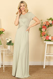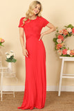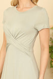 Effortlessly chic, this SHORT SLEEVE ROUND NECK CROSS FRONT SOLID MAXI DRESS will become your new go-to for any occasion. With its comfortable short sleeves, stylish round neck and flattering cross front design, this maxi dress is also versatile and perfect for dressing up or down. Make a statement and feel confident in this must-have piece.