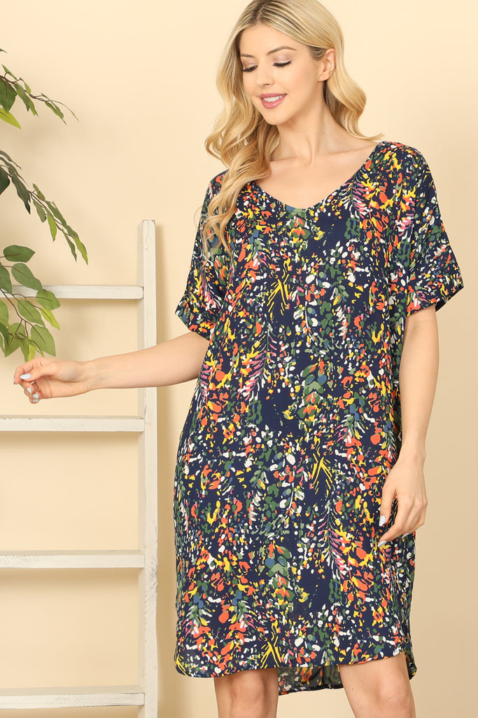 This Short Sleeve V-Neck Printed Dress is perfect for any occasion! Its comfortable and lightweight design makes it ideal for all-day wear, while the v-neckline adds a touch of elegance. The eye-catching print adds a pop of color and style, making it a versatile and stylish addition to any wardrobe.