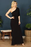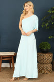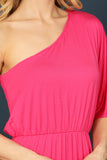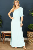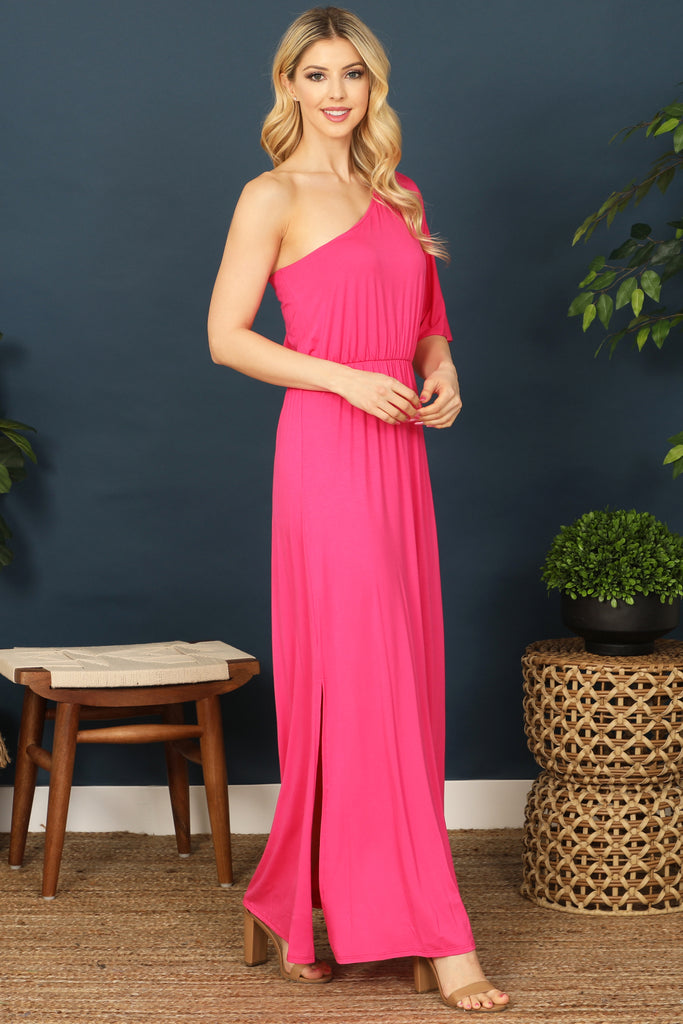 This One Shoulder Elastic Waist Side Slit Solid Maxi Dress is a versatile piece designed for comfort and style. With its elastic waist and side slit design, it offers a flattering fit while allowing for easy movement. The solid color adds sophistication to any look. Perfect for a day out or a special occasion.