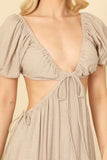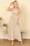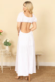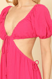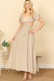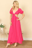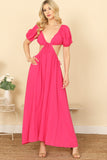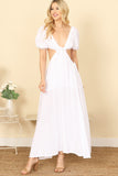 Elevate your style with our Side Cut-Out Detail Puff Sleeve Solid Maxi Dress. Experience the perfect combination of fashion and comfort with its flattering cut-out design and flowy, airy silhouette. Embrace effortless elegance in this versatile and timeless dress.