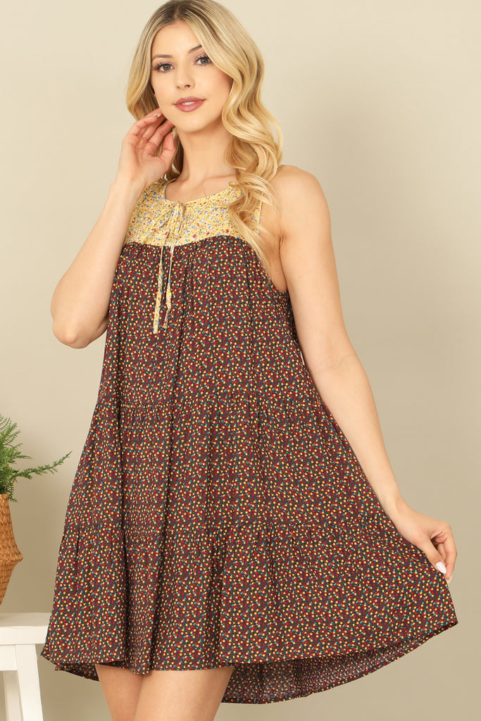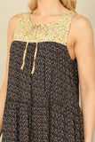 Elevate your summer wardrobe with our Sleeveless Keyhole Tie Babydoll Printed Mini Dress. This stylish and flirty dress features a keyhole neckline, tie waist, and playful print. Stay cool and fashion-forward in this must-have dress!