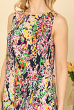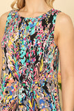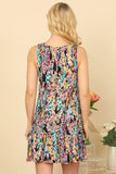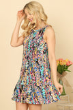 This sleeveless mini dress features a playful ruffle hem and a vibrant, eye-catching print. Perfect for any occasion, it adds a touch of fun and style to your wardrobe. Stay cool and fashionable with this must-have dress.