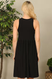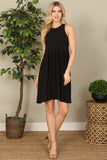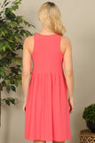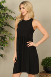 This sleeveless solid dress is a versatile piece that can be dressed up or down for any occasion. With its flattering silhouette and soft, comfortable fabric, it's perfect for any body type. Plus, its sleeveless design allows for easy layering and its solid color can be accessorized in endless ways.