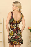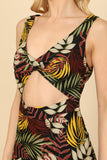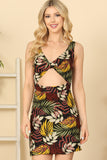 Stay cool and stylish this summer with our Sleeveless Twist Front Cut-Out Tropical Mini Dress. The sleeveless design and cut-out detail offer a breezy and trendy look, perfect for any occasion. The twist front adds a unique touch, while the tropical print makes you stand out. Embrace the warmth in fashion!