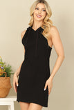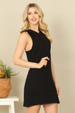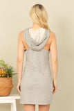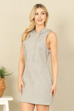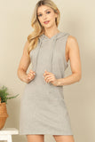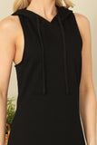 Effortlessly cool and comfortable, this sleeveless drawstring hoodie mini dress is a must-have for any wardrobe. The drawstring waist allows for a customizable fit while the hoodie adds a touch of edginess. Perfect for a casual day out or a relaxed night in.