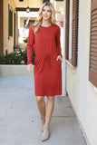Look amazing in this beautiful solid dress which features an elastic waist, long sleeves, and a bow ribbon detail. Perfect for any special occasion or everyday wear!