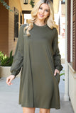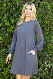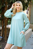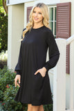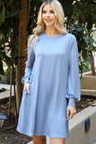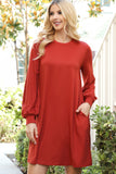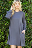 Look stylish whatever the occasion with this Solid Round Neckline Long Sleeve Dress. Its timeless design features a round neckline and long sleeves, perfect for wearing during the day or night. Stay comfortable and classy all day long!