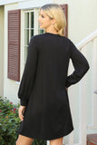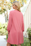TIE STRAP SMOCKED RUFFLE NECK TIERED SOLID MINI DRESS