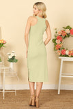 This midi tank dress is both stylish and comfortable. With a solid color and side slits, it's perfect for any occasion. The midi length adds a touch of elegance while the tank top style keeps it casual and versatile. A must-have for any wardrobe.