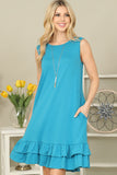 Get ready to turn heads with our Solid Sleeveless Ruffled Hem Dress! This dress features a flattering sleeveless design and a playful ruffled hem, perfect for any occasion. Made with high-quality materials, it will keep you comfortable and confident all day long. Dress it up or down for a versatile and stylish look.