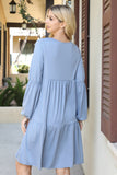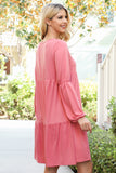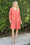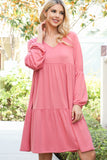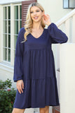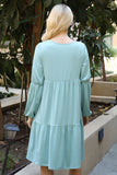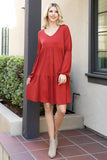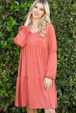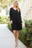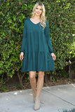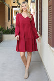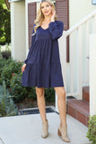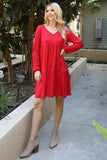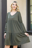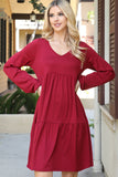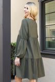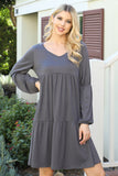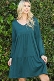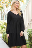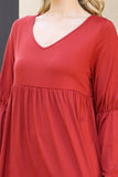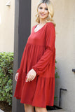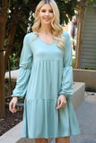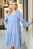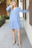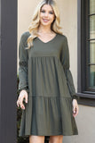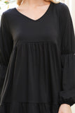 Look your best in this Solid V-Neck Elastic Detail Sleeve Tiered Dress. This dress features a solid V-neck and elastic details on the sleeves for a stylish yet comfortable fit. The tiered design adds an elegant touch to make this dress perfect for any occasion.