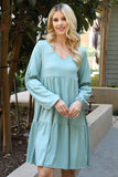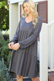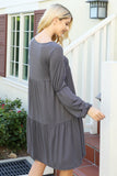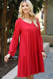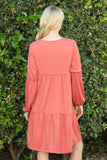 TIE STRAP SMOCKED RUFFLE NECK TIERED SOLID MINI DRESS