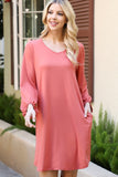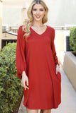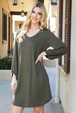 This Solid V-Neck Tunnel Long Sleeve Dress is the perfect addition to your wardrobe. With its classic style, this dress is perfect for any occasion. Its comfortable and stretchy material offers a flattering fit, while the tunnel neckline adds a touch of sophistication. Get the look you want with effortless style.