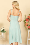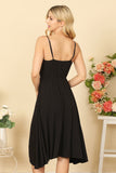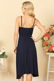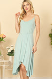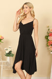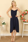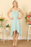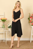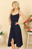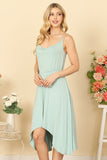 This stylish dress features spaghetti straps and an asymmetrical hem, perfect for a casual day out or a summer event. The solid color adds versatility to your wardrobe, allowing for easy accessorizing and effortless style. Stay comfortable and on-trend with this must-have dress.