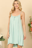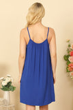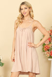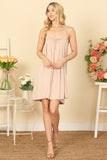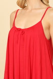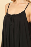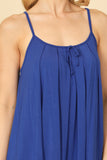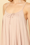 This versatile dress is a must-have for any wardrobe. With delicate spaghetti straps and a flattering pleated design, it's perfect for any occasion. The tie detail adds a touch of elegance, while the solid color makes it easy to mix and match with your favorite accessories.