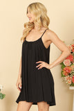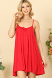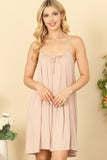 TIE STRAP SMOCKED RUFFLE NECK TIERED SOLID MINI DRESS