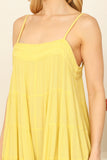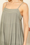 TIE STRAP SMOCKED RUFFLE NECK TIERED SOLID MINI DRESS