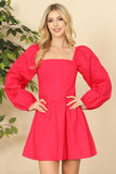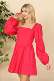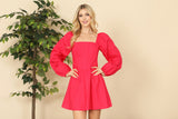 Upgrade your wardrobe with our Square Neckline Puff Sleeve Mini Dress. With a chic square neckline and flattering puff sleeves, this dress is perfect for any occasion. Feel confident and stylish in this must-have piece.