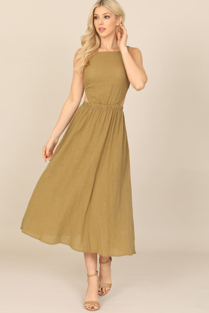 Feel confident and stylish in our Strappy Backless Side Cut-Out Dress. With an alluring design featuring strappy details and side cut-outs, you'll turn heads wherever you go. Perfect for a night out or special occasion, this dress is both fashionable and functional. Elevate your wardrobe with this must-have piece.