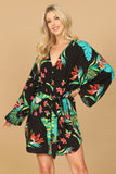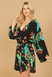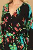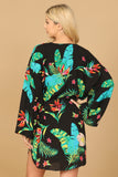 This tropical-inspired dress features a long sleeve design, a button-down front, waist tie detail, and a curved hemline. Perfect for any occasion, this dress offers a flattering silhouette and stylish details that will make you stand out. Embrace the tropics and elevate your wardrobe with this mini dress.
