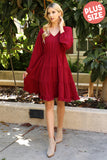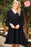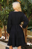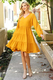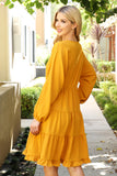 TIE STRAP SMOCKED RUFFLE NECK TIERED SOLID MINI DRESS