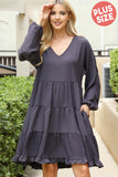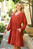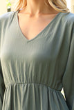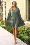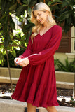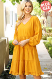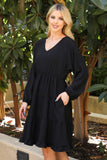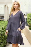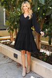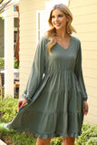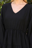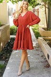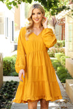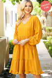 This stylish dress will make you look and feel your best. Featuring a V-neck design with beautiful puff sleeves and an adjustable elastic waist, this dress will flatter your figure and keep you comfortable. The tiered skirt creates a look that is perfect for both day and night.