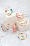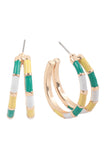 Add a colorful pop to your look with these beautiful 2 Layered Color Block Hoop Earrings. Featuring a two-toned metal finish, these earrings will give you a stylish yet effortless look.