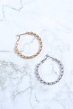 Our twisted pincatch hoop earrings are perfect for adding a touch of shine to any outfit. Stylish and secure, they have a twisted pincatch closure, making them a comfortable and fashionable choice.