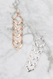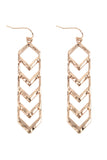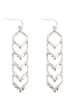 Add a unique and stylish touch to any outfit with our 2.75 inch textured chevron metal hook earrings. These earrings not only make a fashion statement, but also provide a secure and comfortable fit all day long. Elevate your jewelry game with these trendy and chic earrings!