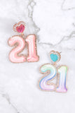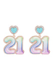 Celebrate turning "21" with these adorable balloon dangle post earrings. These earrings are perfect for any special occasion and add a touch of whimsy to any outfit. The lightweight design makes them comfortable to wear all day, and the sturdy post ensures they stay securely in place. A must-have for any fashion-forward individual!