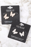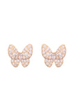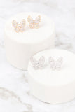 Gorgeous bedazzled butterfly design post earrings with clear zirconia creating a look that's perfect for all night outs, formal looks, etc. Light-weight and easy to wear all day and night long.