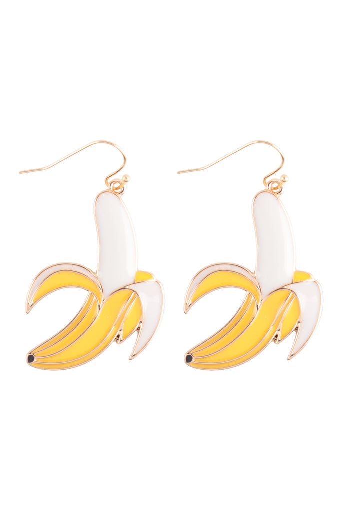 Add a touch of whimsy to your outfit with our Banana Enamel Dangle Fish Hook Earrings! Made with high-quality materials, these earrings feature a unique banana enamel design that is sure to catch attention. With the easy to wear fish hook closure, these earrings are a perfect addition to any jewelry collection.