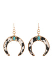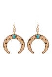 Complete your western look with these unique cow print bull horn earrings! Crafted with attention to detail, these earrings are the perfect accessory to show off your love for all things western. The cow print pattern adds a touch of fun while the bull horn design adds a rugged and stylish appeal. Perfect for any occasion, these earrings are a must-have for any cowgirl or cowboy.