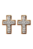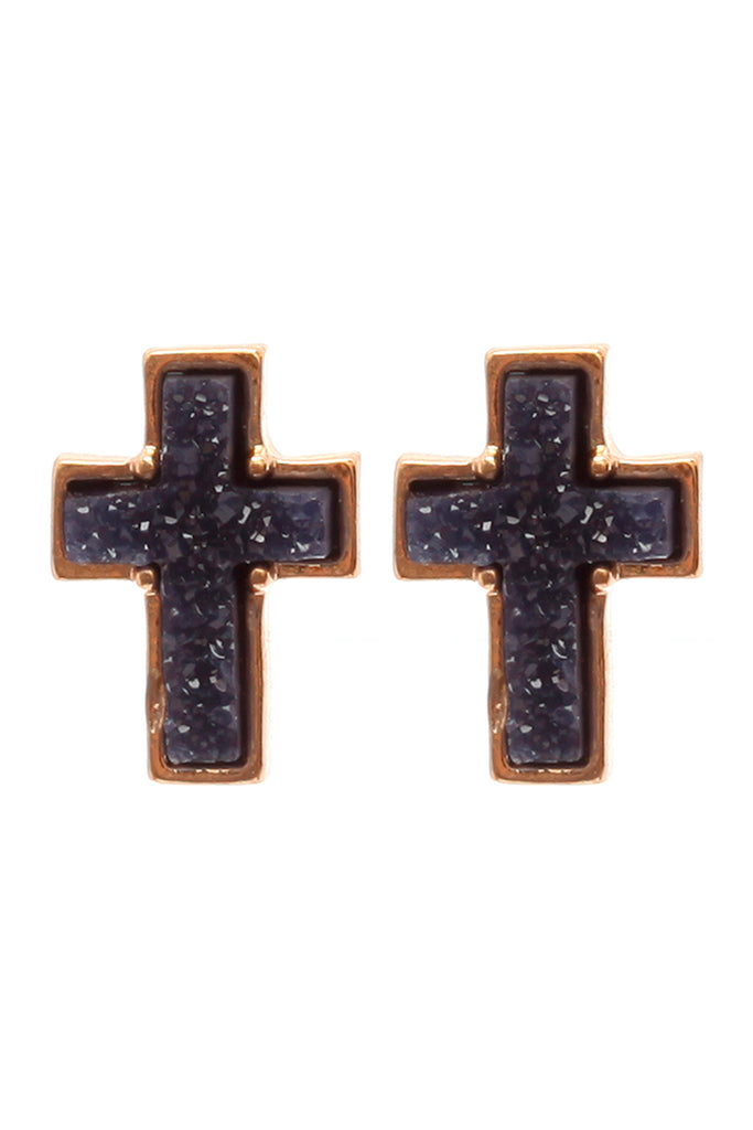 Chic an trendy, these cross detailed earrings feature a colorful silhouette of front facing druzy stones, adding the perfect finishing touch. The gold-touch base makes perfect to wear with many outfits and their closure makes them easy to take off and on.