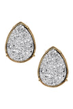 When your outfit needs a bit of extra spark, look no further than these chic stud earrings. Featuring a delicate gold frame with encrusted shimmering quartz to bring instant glamour to any look. Pair with a light knit and denim to take your look up a few notches, or complement a little black dress for a special occasion.