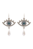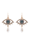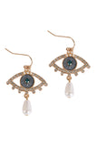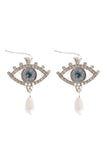 "Protect your style with our Evil Eye Pave Sand sticker Pearl Hook Earrings! Made with intricate pave detailing and a delicate pearl, these earrings add a touch of whimsy to any look. Keep the haters at bay with these one-of-a-kind statement accessories. (Evil-eye not included)