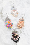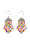 These Geometric Seed Beads Fringe Dangle Hook Earrings offer contemporary style with a hint of color. The dangle hook design gives any outfit a modern flair. Perfect for adding a touch of vibrancy and sophistication to any event.