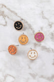 Dainty smiley face stud earrings is made of high quality environmental protection Brass statement high polish tarnish. These Smiley Face Earrings adds a dose of good vibes! Super fun in glitter enamel, this smiley face sticker is in the happiest shade of yellow and gold trimmed accents!