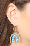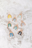 Gorgeous and full of color, these homaica designed earrings are everything for this summer season. These gold post and open hoop earrings feature a combo of acrylic wood and translucent filled colors with accents to add a touch of sparkle. A light-weight feel along with post backs included.