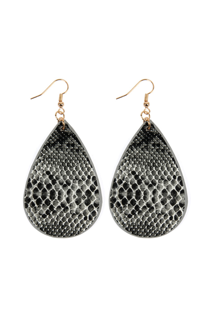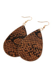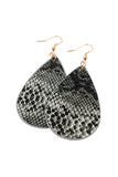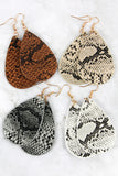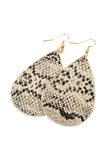 Stylish, on-trend earrings all made from genuine leather. This snake skin accented earrings will surely be beautiful paired with dress and bottoms. Add to your date night out outfits and holiday ensembles.