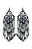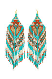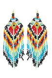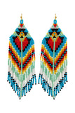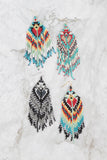 Elevate any outfit with our Western Style Aztec Seed Bead Fringe Drop Earrings. These statement earrings feature a traditional Aztec design and movement with delicate seed bead fringe. Perfect for adding a touch of bohemian flair to your look.