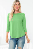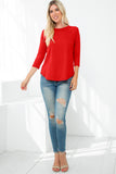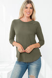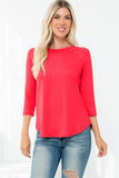 This 3/4 sleeve top is perfect for any occasion. With a comfortable, round hem and solid color, you'll look polished and stylish. The versatile design allows you to dress it up or keep it casual - perfect for both work and play.