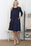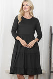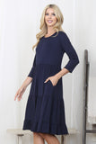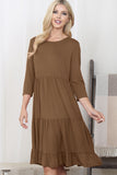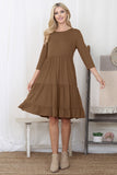 Look effortlessly stylish with this 3/4 sleeve tiered solid dress. Crafted from lightweight fabric with an eye-catching tiered design, you'll be sure to turn heads wherever you go! Perfect for any special occasion or a day out with friends.