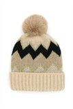 Wrap your noggin in some cozy style with this chevron-striped pompom beanie! Feel the fuzzy fleecy warmth as you strut the streets, adding a lightning bolt of fun to your cool winter look.