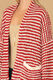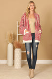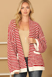 STRIPES PRINT FRINGE OPEN FRONT KIMONO