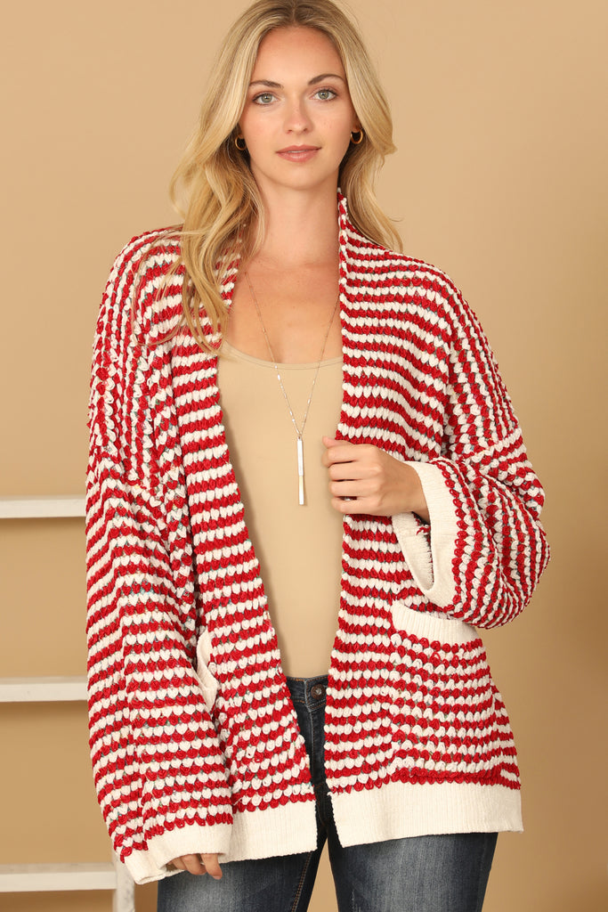 This chunky knit open cardigan is the perfect addition to your wardrobe. Its cozy and stylish design will keep you warm and fashionable. The open front allows for easy layering and a relaxed fit. Stay comfortable and on-trend with this must-have piece.