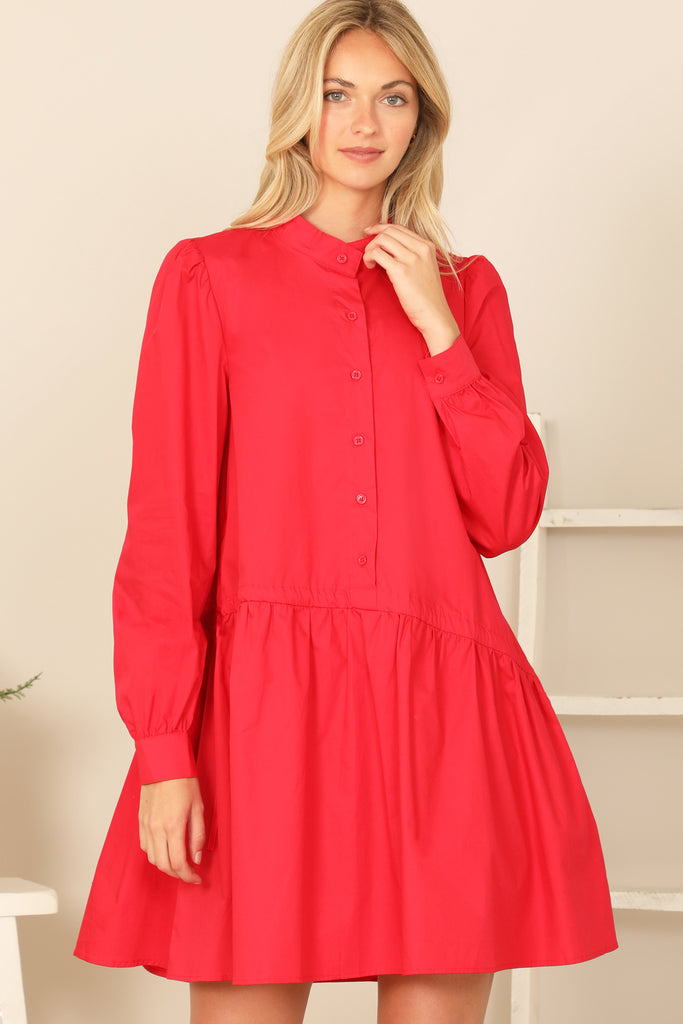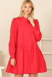 Effortlessly elegant, this COLLAR LONG SLEEVE SOLID DRESS adds a touch of sophistication to any occasion. With its flattering cut and comfortable fit, you'll feel confident and stylish all day long. Perfect for both work and play, this dress is a must-have addition to your wardrobe. (Chic and classy, without breaking the bank!)