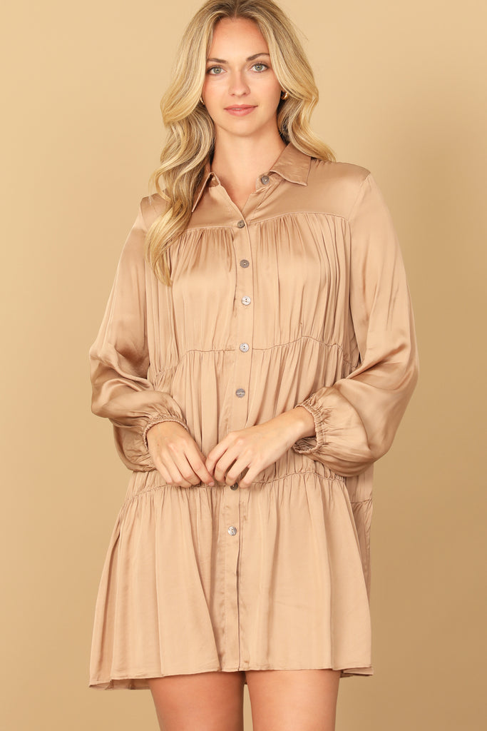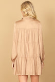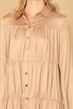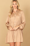Stay chic and stylish with our COLLARED LONG SLEEVE PLEATED DETAIL SOLID DRESS. Its versatile design and pleated details add a touch of elegance, perfect for any occasion. With its comfortable long sleeves and solid color, you'll look and feel great all day. Upgrade your wardrobe with this must-have dress!