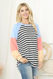 This Color Block Long Sleeve Stripe Top is perfect for those chilly mornings. It's lightweight, comfortable, and features a stylish color block and stripe print. Perfect for any occasion, pair it with jeans or shorts for a cool, casual look.